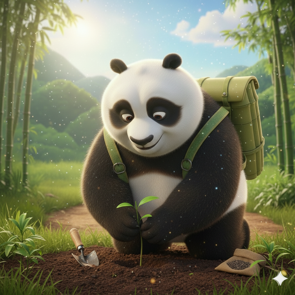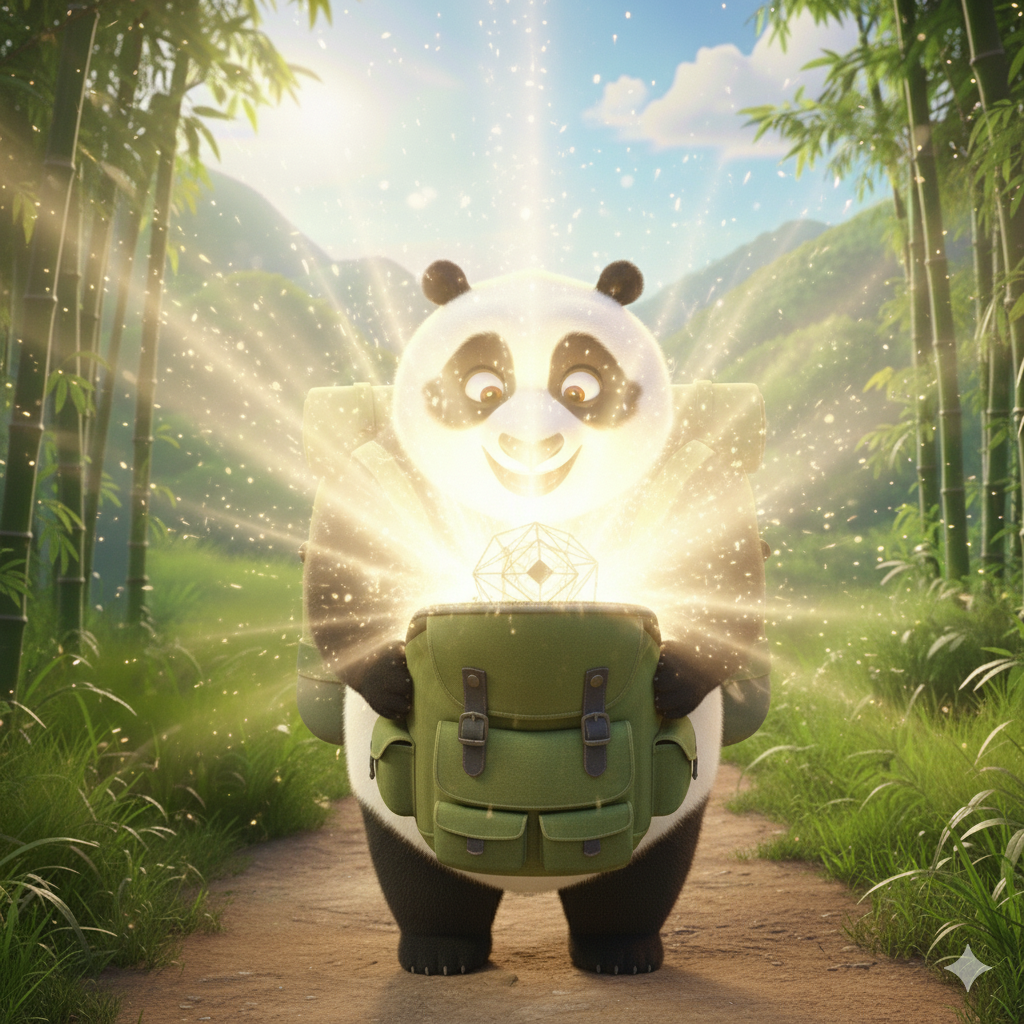 Elegimos al PANDA porque es el Yin Yang hecho vida: un ser que lleva en su pelaje el equilibrio de la dualidad, la calma y la fuerza, lo suave y lo firme. Su sola presencia nos recuerda que la armonía no se alcanza eliminando los opuestos, sino abrazándolos en un mismo cuerpo.
